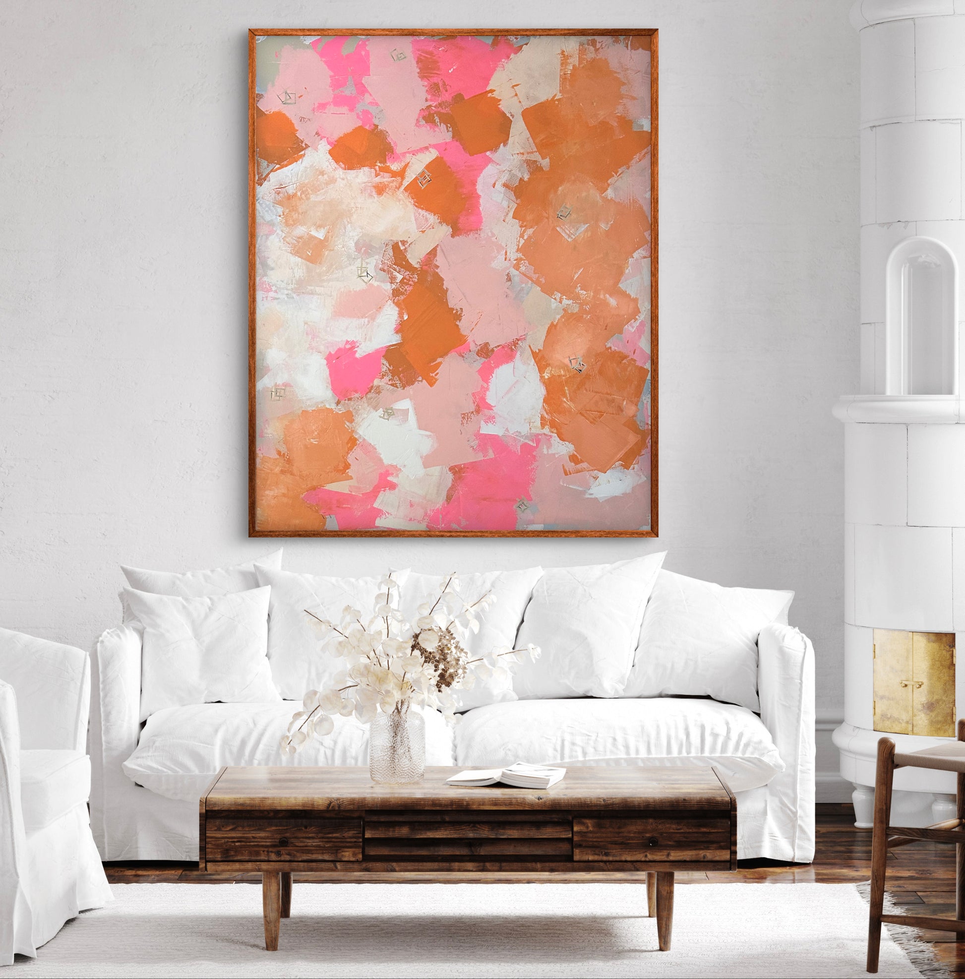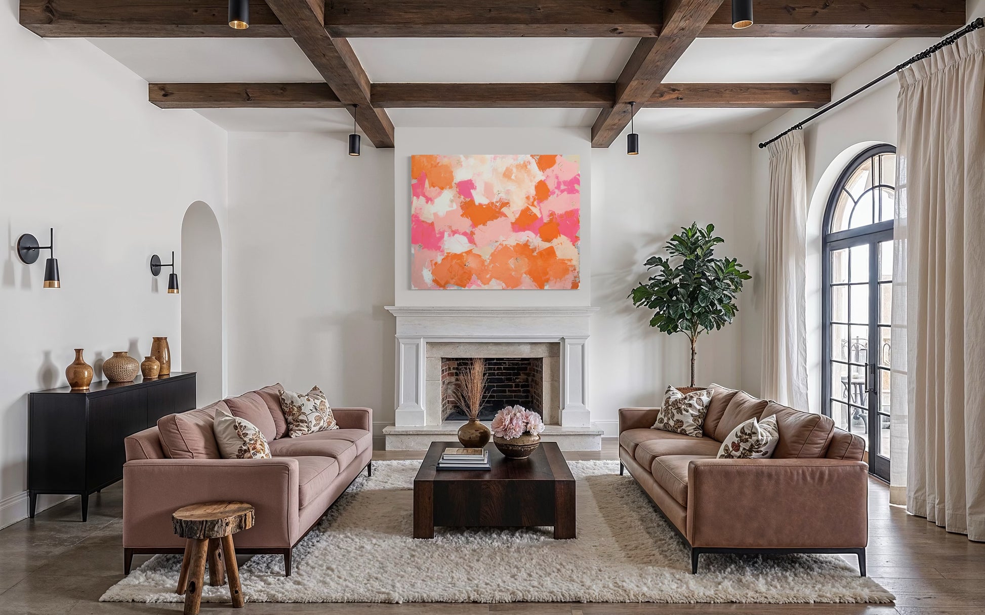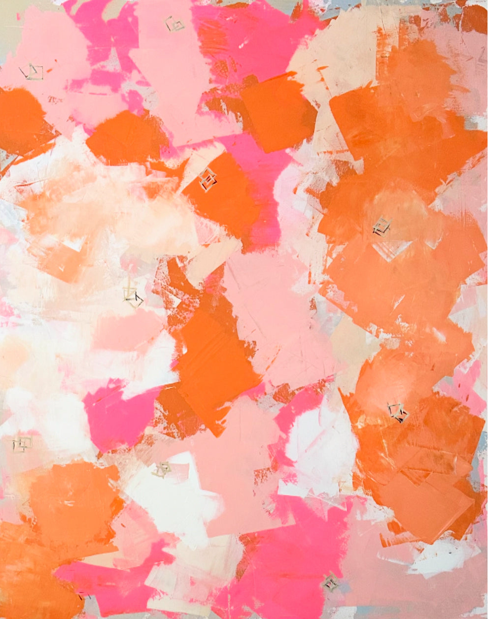 This abstract painting captures the mood of the Northern Italian mountains using browns, yellow, and blue.