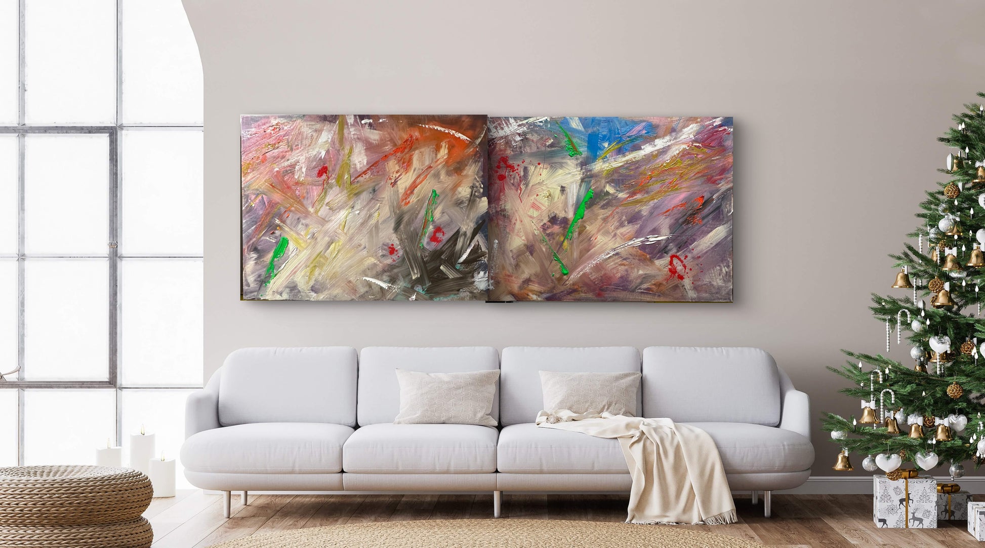 Experience a soothing effect with Composition#8. The soft neutral colors and aqua palette create a peaceful atmosphere in any space. Relax and unwind with this perfect combination of colors, carefully designed to bring a sense of calmness to your surroundings.