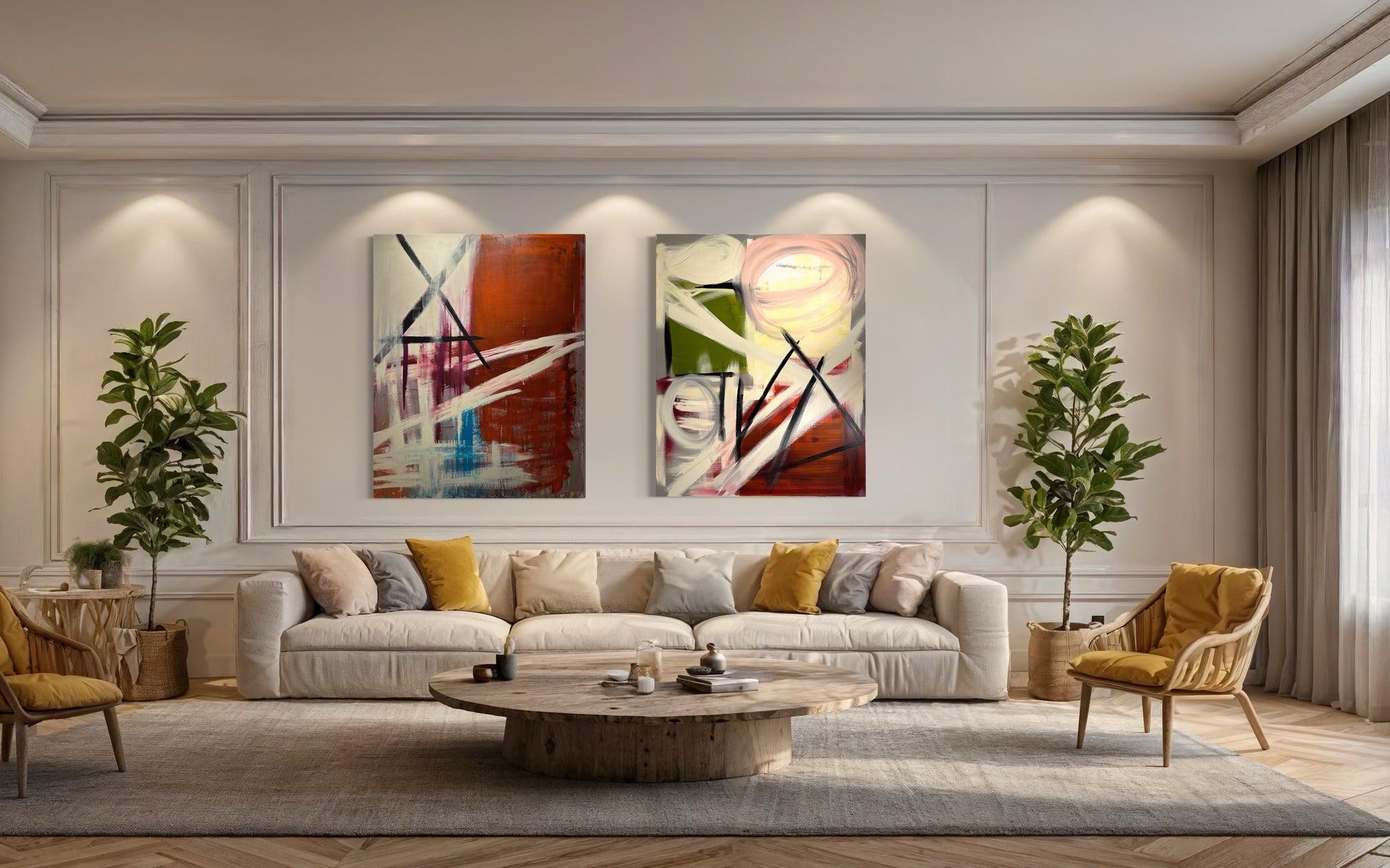 Experience a soothing effect with Composition#8. The soft neutral colors and aqua palette create a peaceful atmosphere in any space. Relax and unwind with this perfect combination of colors, carefully designed to bring a sense of calmness to your surroundings.